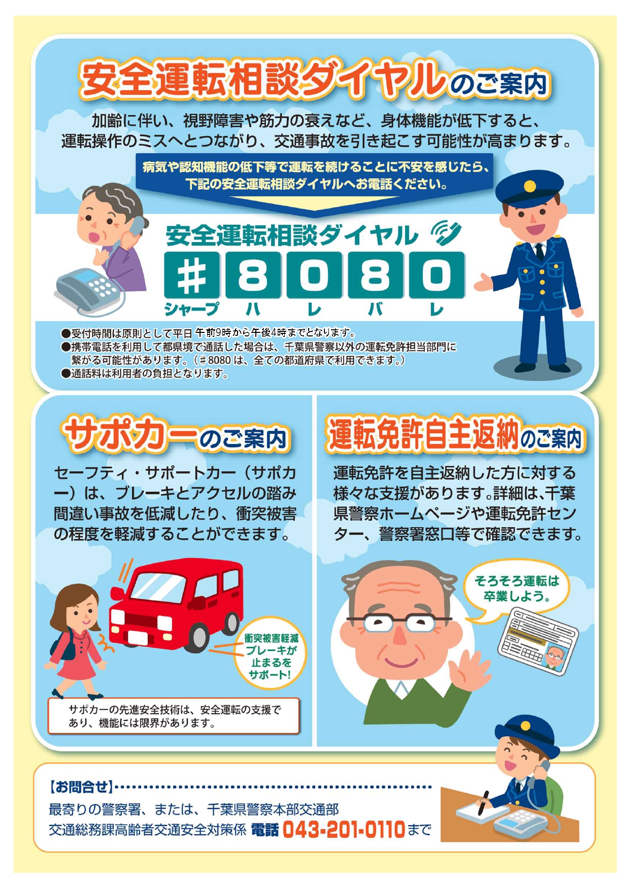 「はればれ運転」とは、「危険を避けるため、運転する時と場所を選択し、運転能力が発揮できるよう心身及び環境を整え、加齢に伴う運転能力の低下を補うような運転方法を採ること」をいいます。この「はればれ運転」は千葉県独自の名称です。