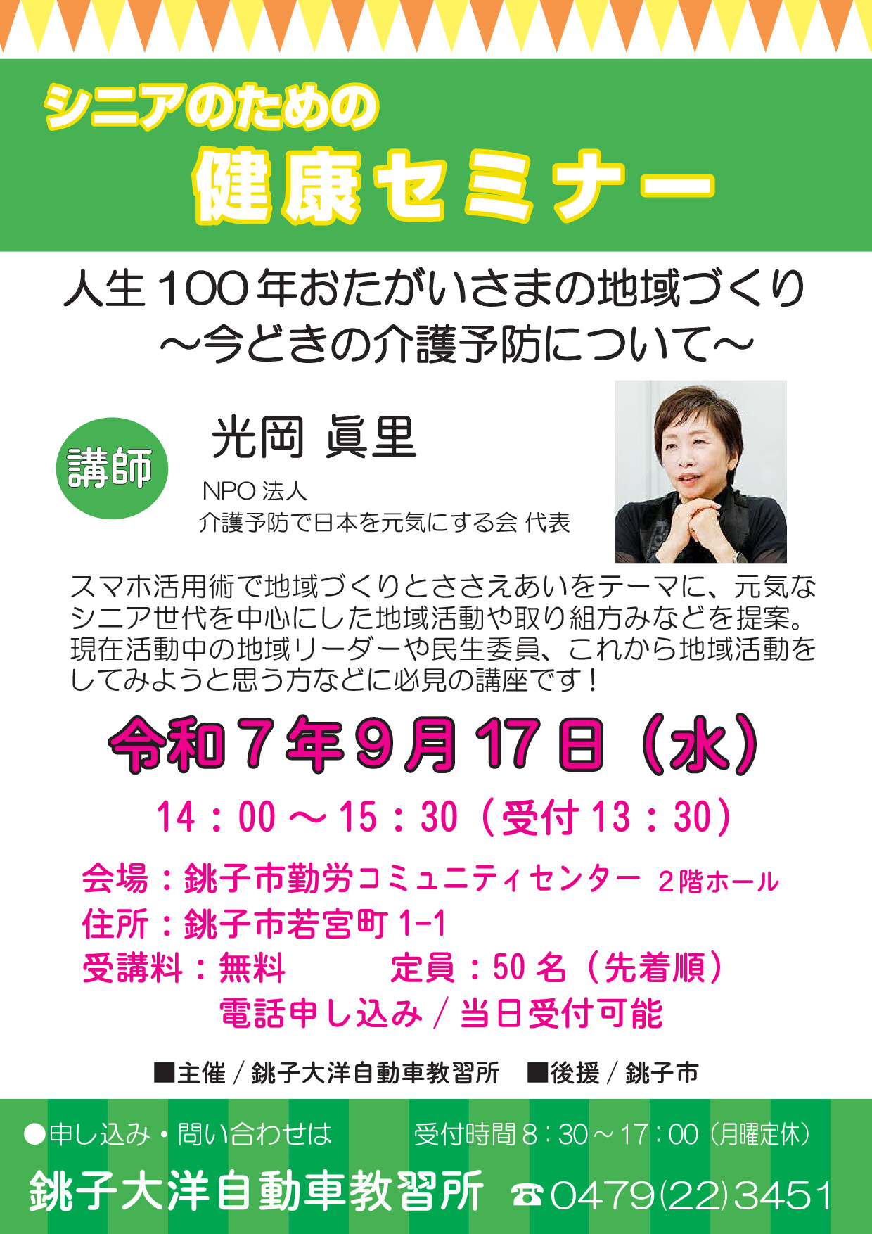 銚子大洋自動車教習所主催で「シニアのための健康セミナー」を開催します。